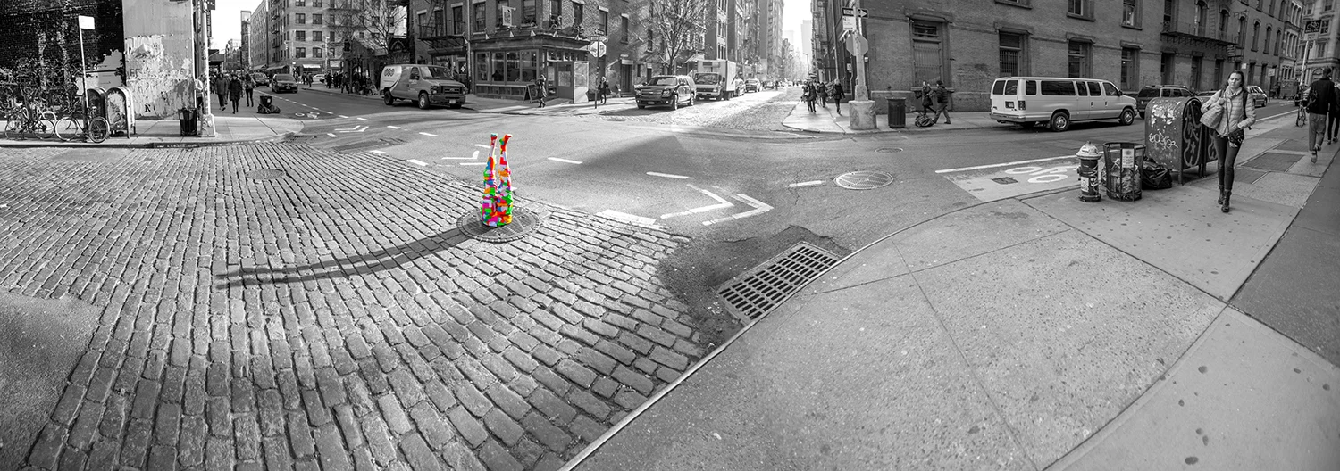 Panorama of Yo Statue in Brooklyn
